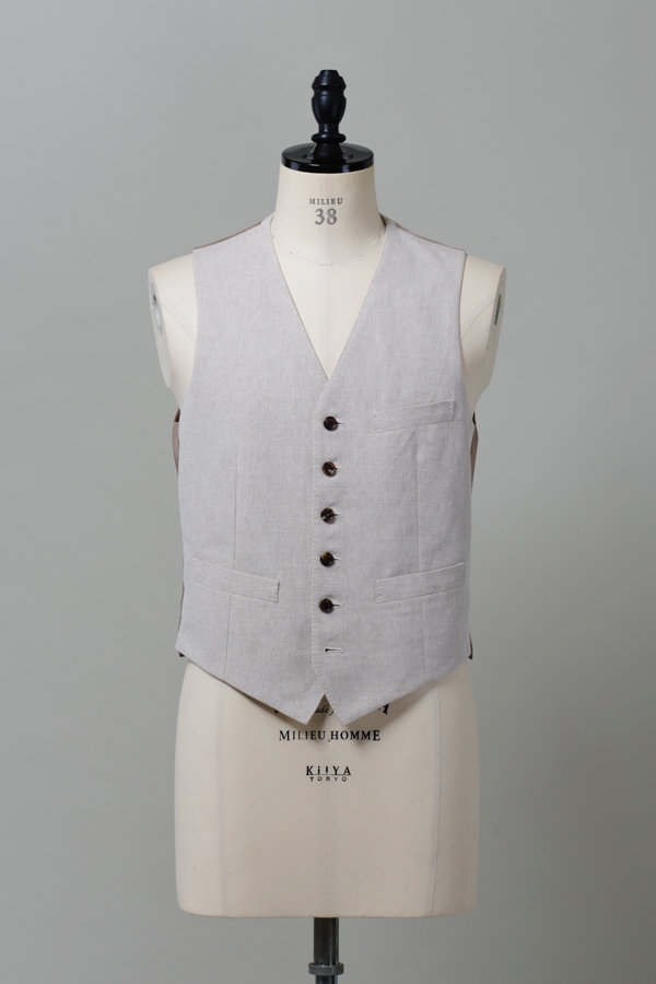 [ ダンガリーノーカラーベスト ]